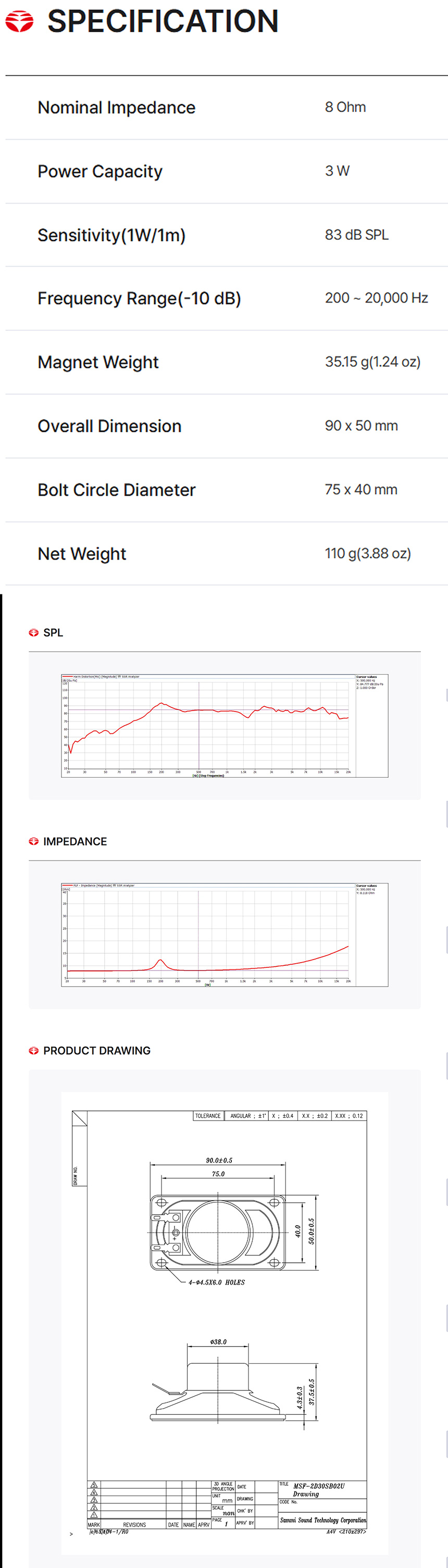> 삼미스피커 MSF-2D30SB02U 3W 8옴 풀레인지 스피커 오발타입