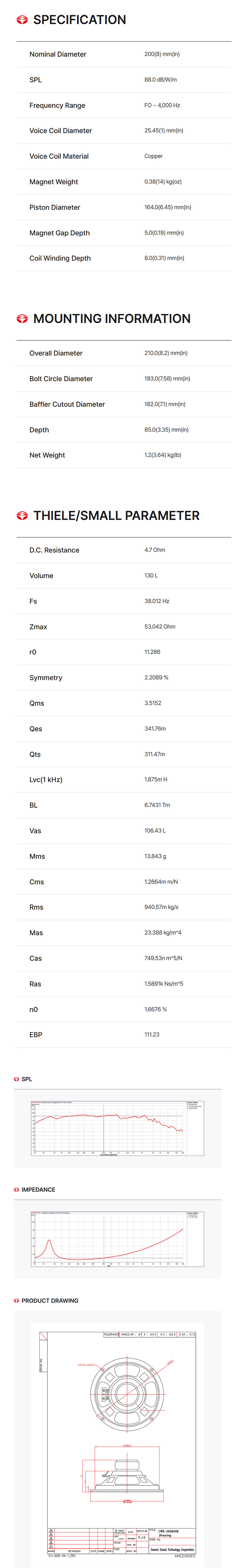 CWR-200B50K 8인치 100W 노래방 스피커유닛 삼미스피커