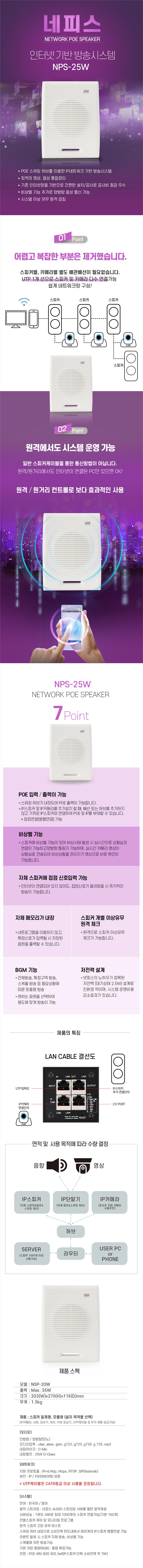 > 네피스 IP스피커 네트워크스피커 NPS-25W 실내용 점퍼형