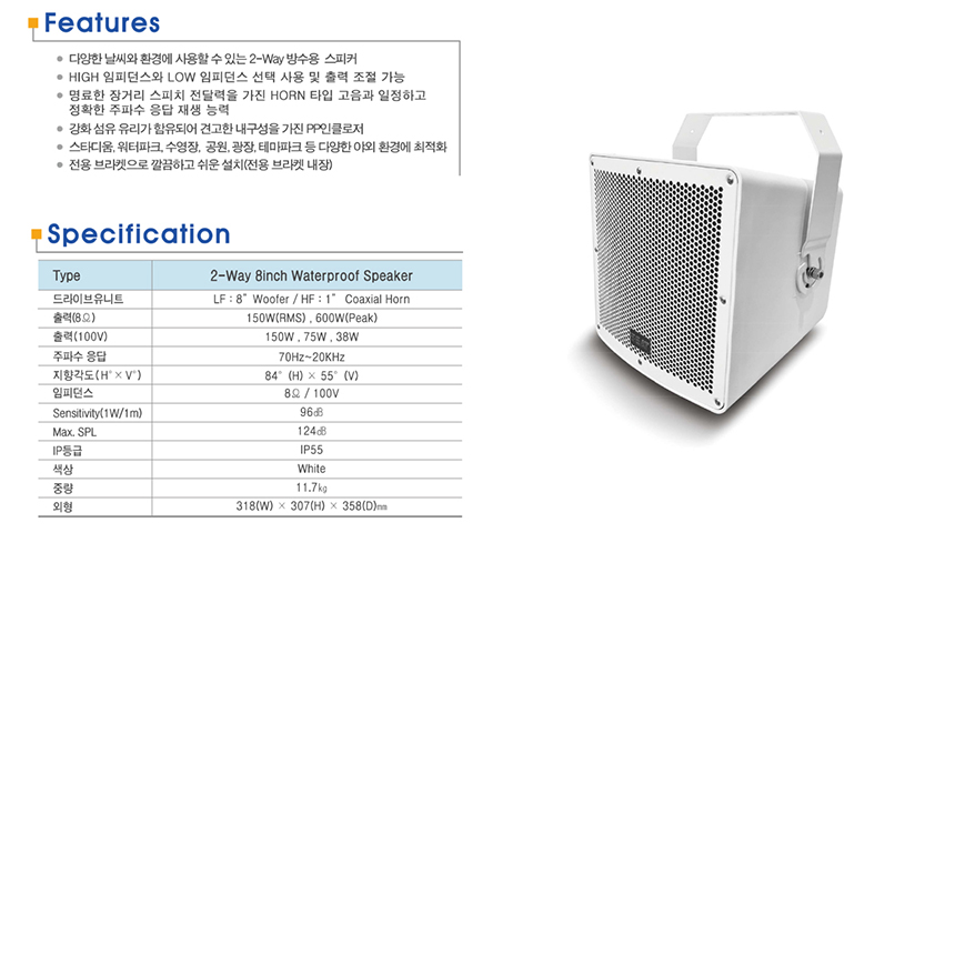 > BEAT 비트 MWP-8T 방수스피커 8인치