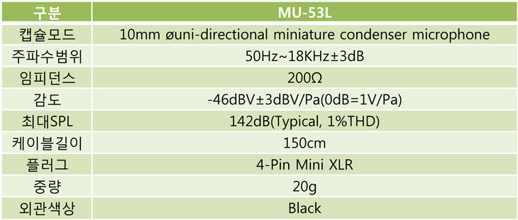 > 미프로 MU-53L 핀마이크 4핀 미프로무선마이크 전용